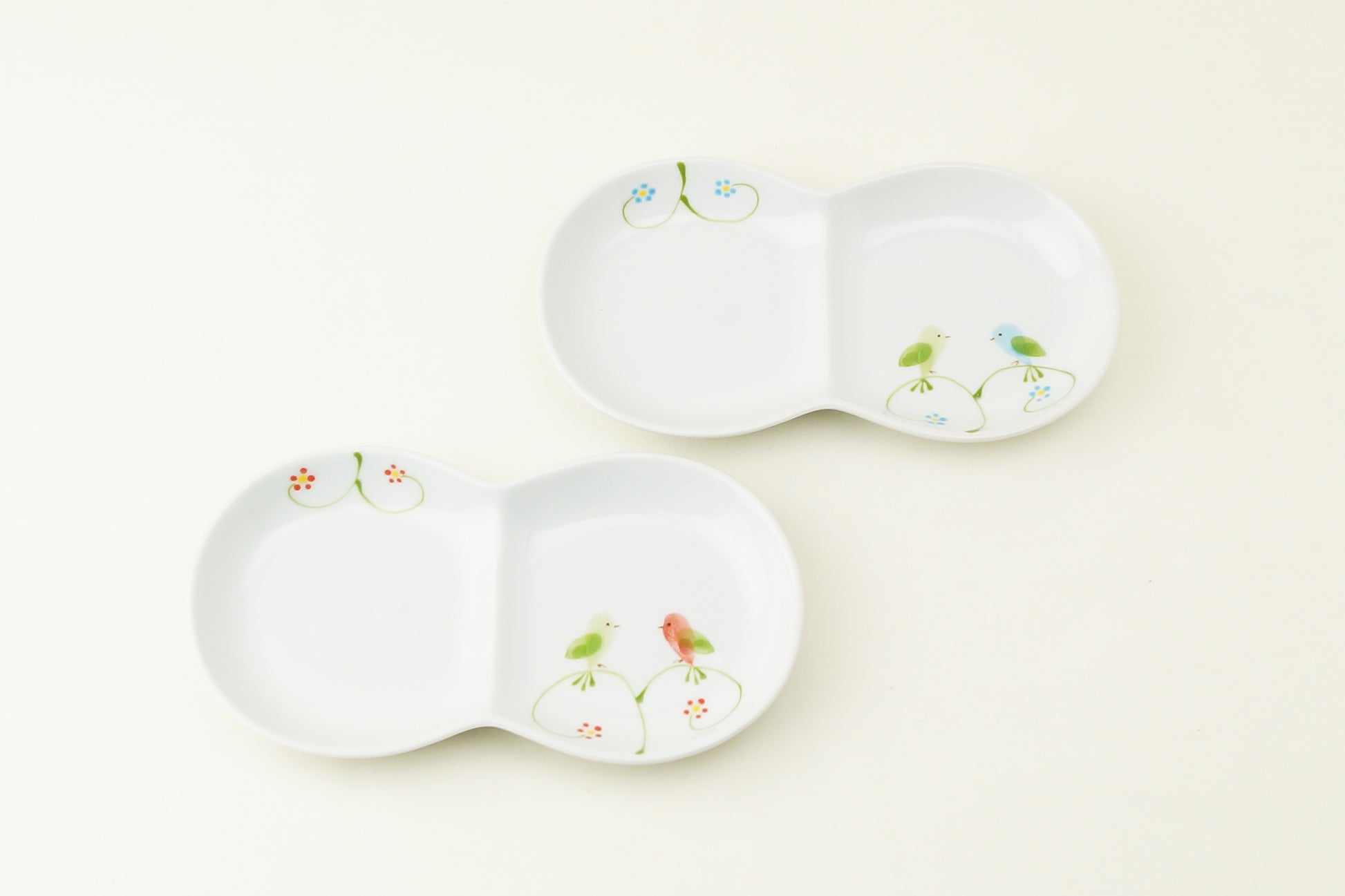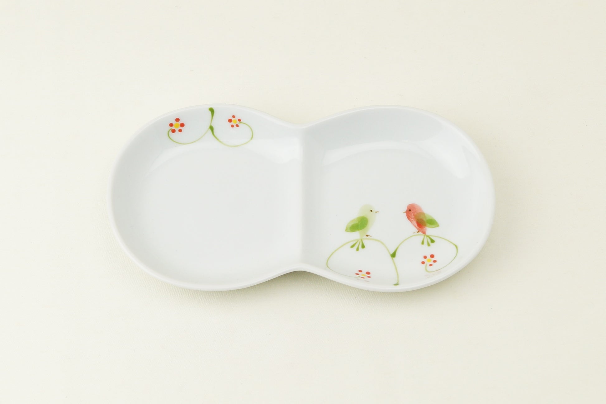 暖かい春の訪れを喜んでいるかのような可愛らしい小鳥のお皿。今にも小鳥たちのさえずりが聞こえてきそうです。各砂糖やデザート、おつまみや薬味入れとしてもご利用頂けます。